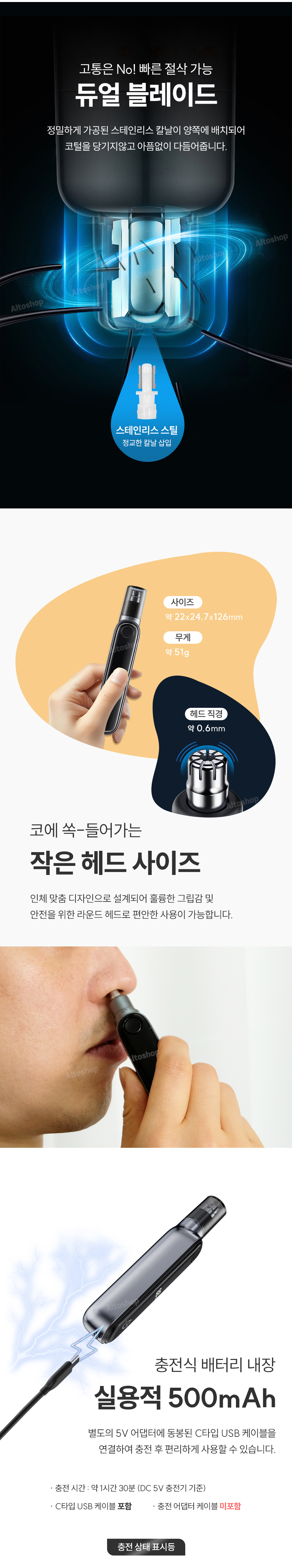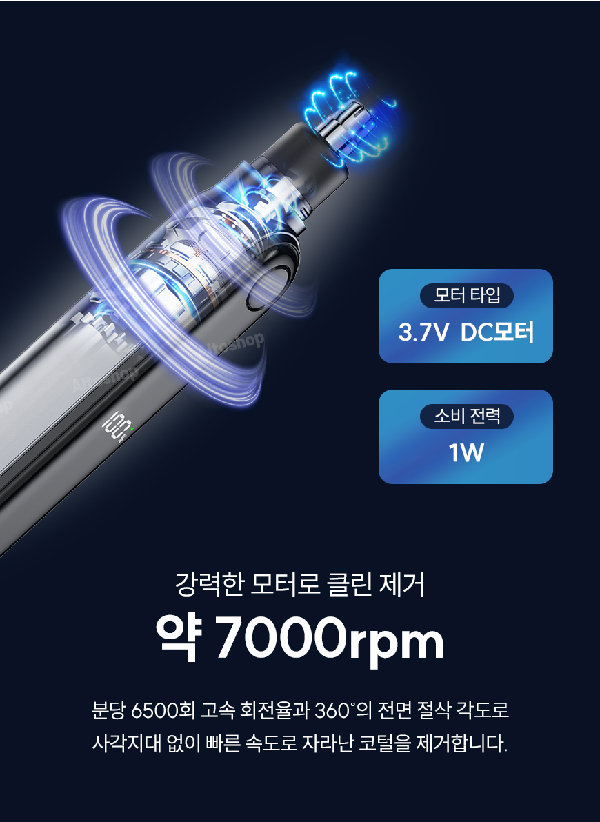 - 강력한 7000rpm 의 모터 스피드로 더욱 빠르고 안전하게 코털을 제거