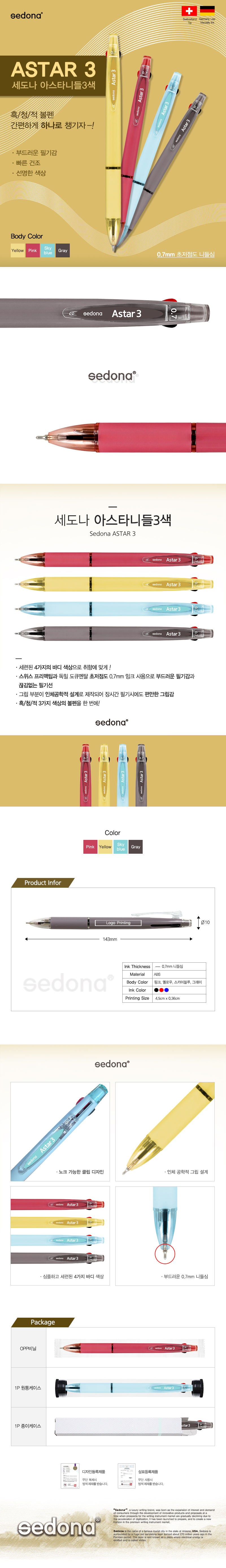 세도나아스타니들3색 흑,청,적 3색볼펜1p