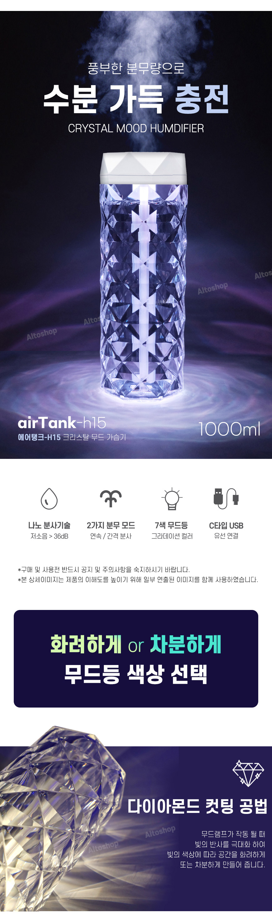 - 7색 무드등 조명으로 분위기와 가습까지 책임진다