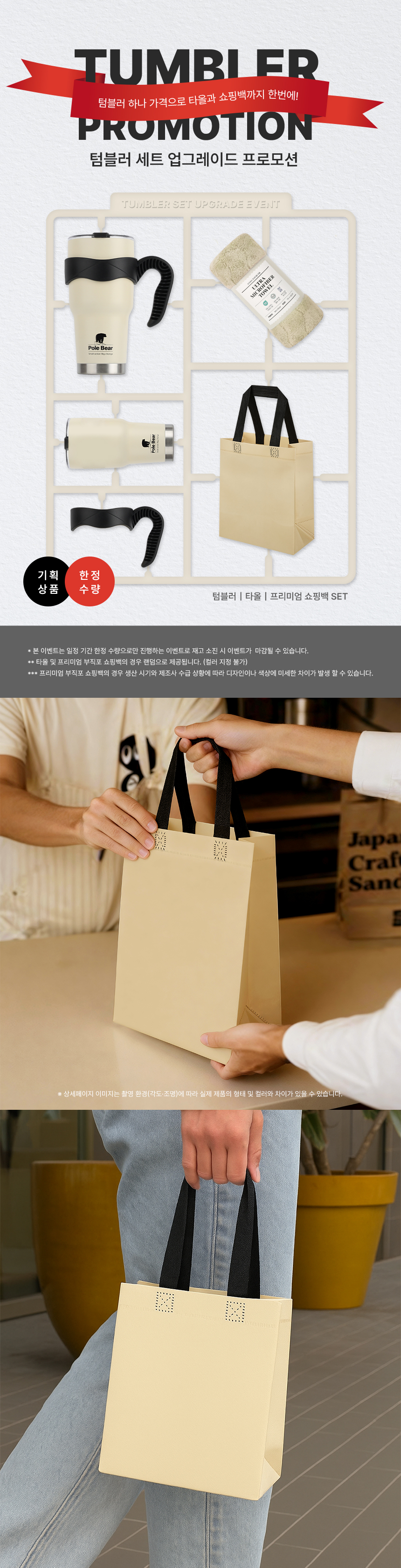 텀블러 1P + 타올 1P + 고급 부직포 쇼핑백