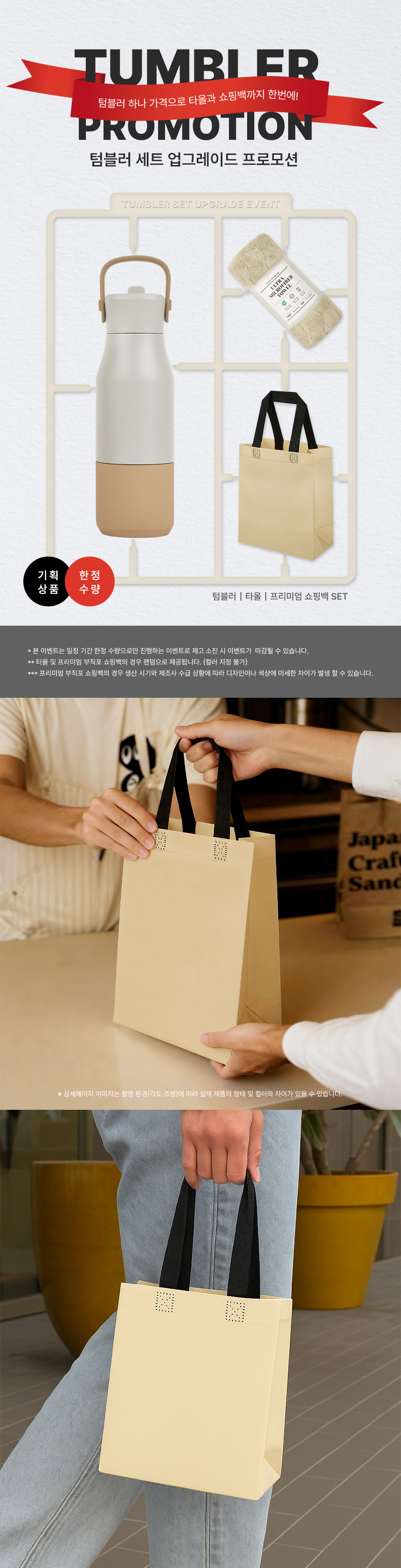 텀블러 1P + 타올 1P + 고급 부직포 쇼핑백