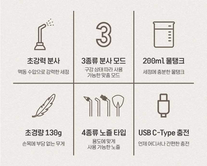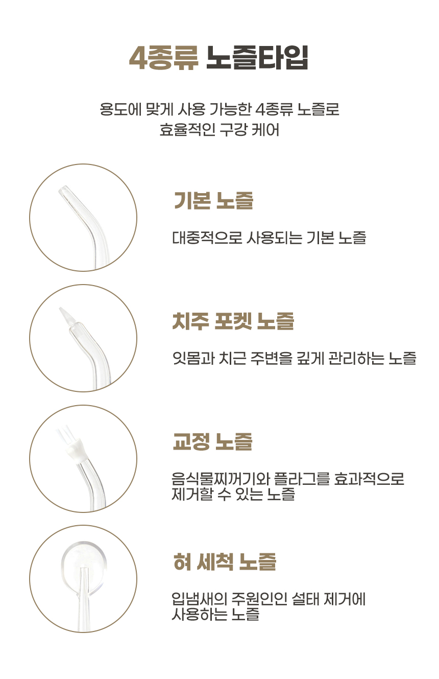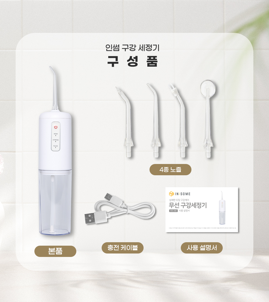 본품, 4종 노즐, 충전 케이블, 사용 설명서