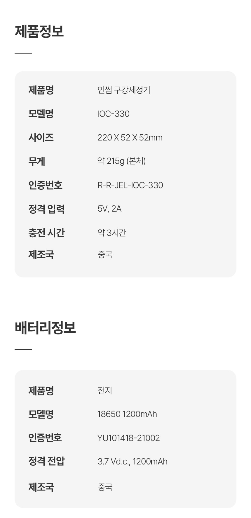 약 215g 220x52x52(mm) 5V, 2A