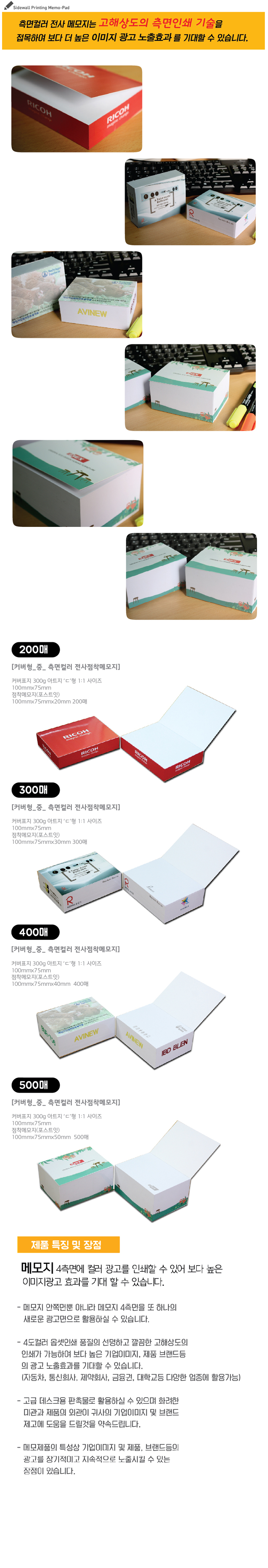 100mm x 75mm x 40mm, 400매 / 포스트잇 90g 백상모조(국산유성점착원단), 표지 300g 아트지
