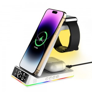비즈 3in1고속무선충전 LED무드등 알람시계