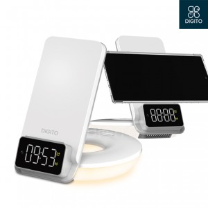 스마트폰, 이어폰, 스마트워치 동시충전 및 알람시계와 무드램프가 결합된 5in1 고속충전시계