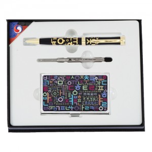 훈민정음볼펜+신문자도자개가죽명함지갑