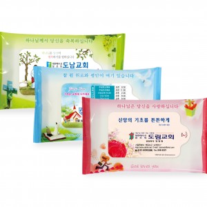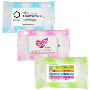 판촉용 노랑 물티슈 15매