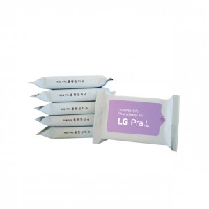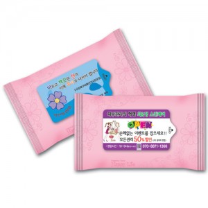판촉용 분홍 물티슈 5매