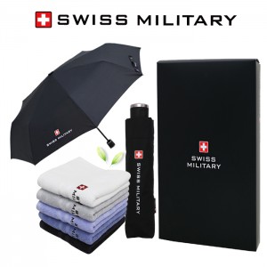스위스밀리터리 3단완자우산 타올세트