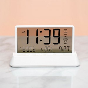 대형 LED 디스플레이와 15도 경사 디자인으로 시인성을 높인 탁상시계