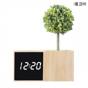 대나무 무소음 LED 알람시계 가로형