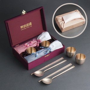우리방짜유기 술잔 수저 2인 (겹보자기 포장)