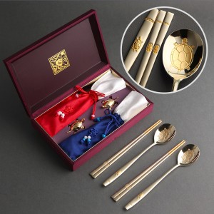장수거북 24K금도금 티타늄수저세트(거북받침+청홍수저집)