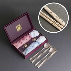 오복 장수 방짜유기 2인수저(오동나무함+보자기포장)