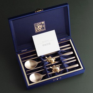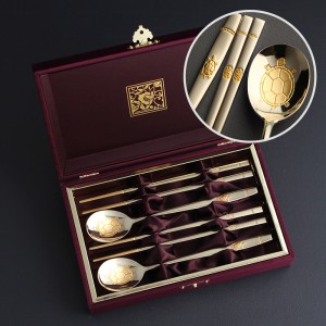 오복 장수 방짜유기 2인 수저+거북받침 2P세트