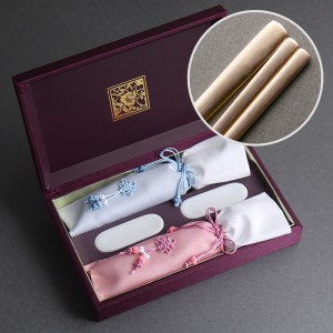 오복 장수 방짜유기 2인수저 (도자기받침)(수저집)