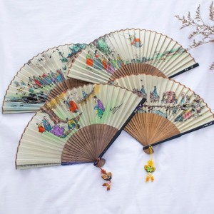 자개 민속화 실크부채