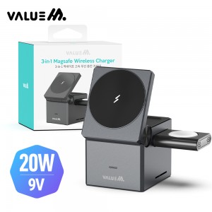 밸류엠 큐브 맥세이프 3IN1 고속 무선 충전기(CtoC 1.0M 60W 케이블 포함)
